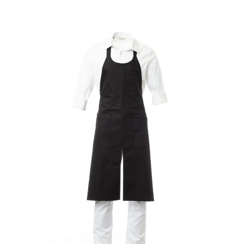 Delantal unisex GOURMET, con peto de escote redondeado y ajustable con 2 botones en el delantero, twill de algodón y Lycra® T400® 60% COTONE 40% EME 190 GR/MQ