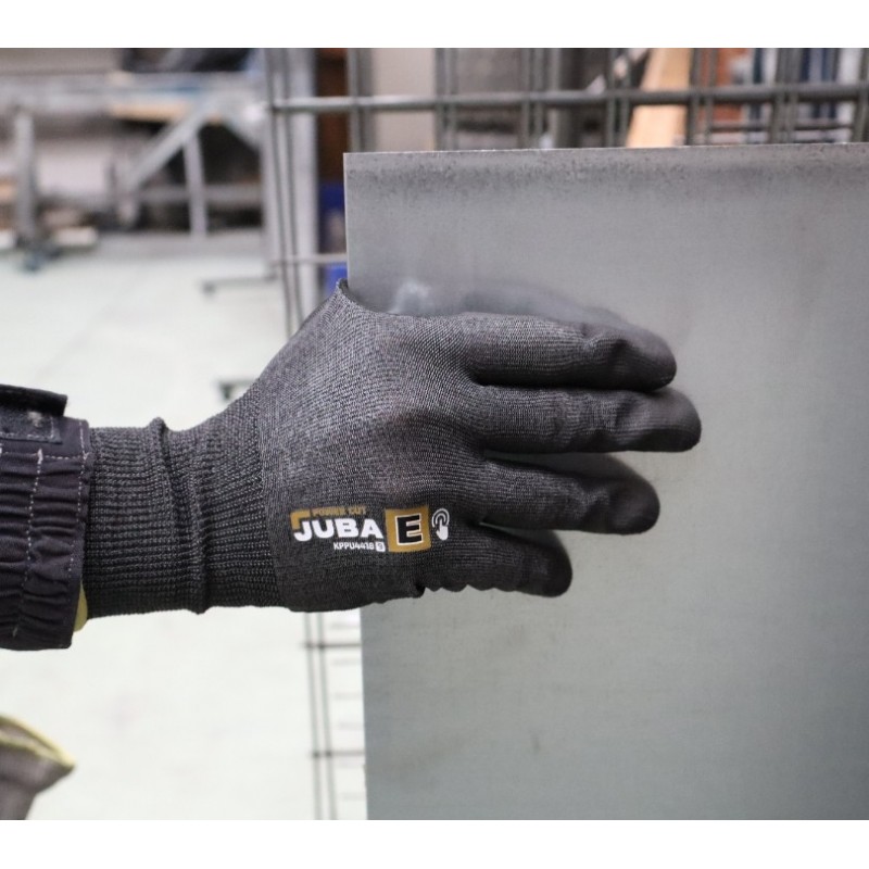 Guante Juba KPPU4418 POWER CUT de fibra K-ROCK+ con nailon y elastano recubierto de poliuretano en la palma, CAT III EN 388:2016+A1:2018 3X42E, EN 407:2020 X1XXXX, CUT E