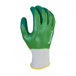 - Su doble recubrimiento de nitrilo aporta máxima resistencia a la abrasión, mayor durabilidad e impermeabilidad