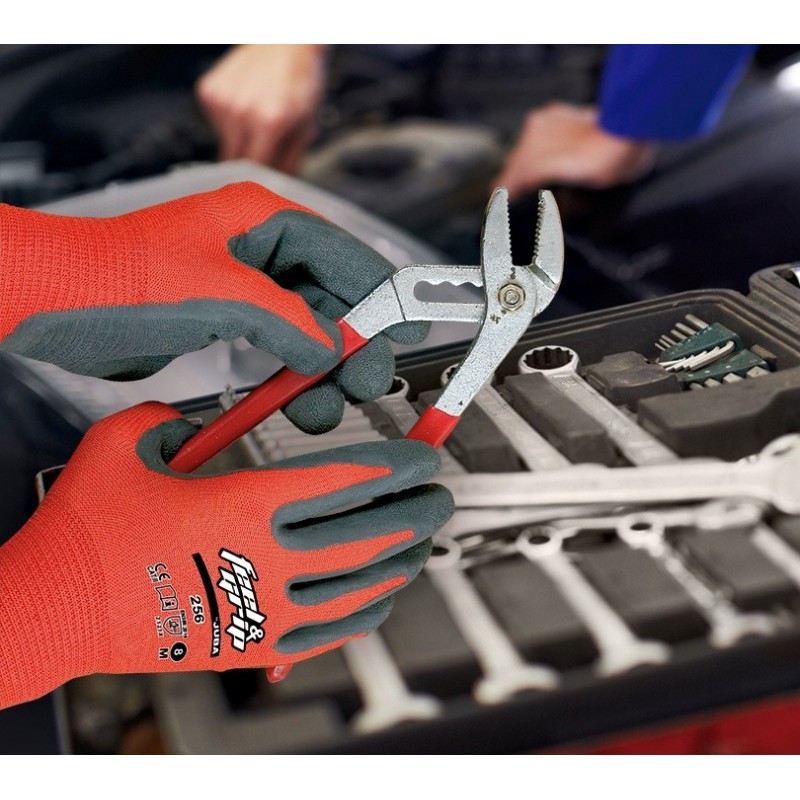 Guante Juba sin costuras de poliéster recubierto de látex rugoso H256 FEEL & GRIP Rojo/Gris, CAT II EN 388:2016+A1:2018 2121X