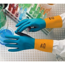 Guante Juba 322 CONQUEROR II sin soporte bicolor de neopreno sobre látex flocado ligero, CE CAT. III EN388:2016+A1:2018 2110X, EN ISO 374-1:2016 TYPE A AKLMNPST, EN ISO 374-5:2016 VIRUS, Apto para uso alimentario.
