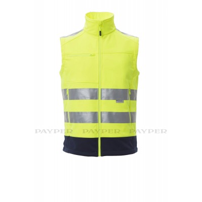 Chaleco Payper de hombre ergonómico, bicolor de alta visibilidad TRAFFIC, WP 8000 mm H₂O, WVT 5000 g/m² 24h., 100 % POLIÉSTER SOFT-SHELL 3/1 TWILL 75D 310 GR/MQ