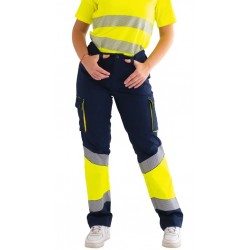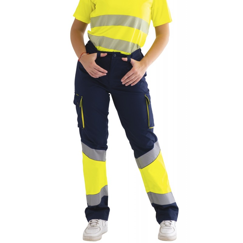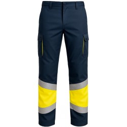 Pantalón stretch combinado de alta visibilidad TRASGO Bandas Segmentadas, Tejido en Stretch 64% poliéster, 33% algodón, 3% Expandex 250 grs.