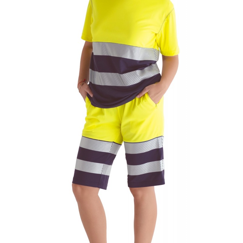 Bermuda DELTA Alta Visibilidad, 100% poliéster técnico 130 grs/m², Reflectante segmentado, CE EN 13688, EN 20471 CAT-I