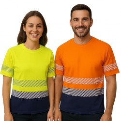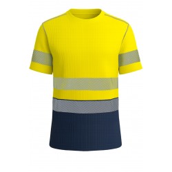 Camiseta de alta visibilidad manga corta BAMBÚ COMBI, con bandas Reflectantes Segmentadas, Tejido reciclado 75% poliéster técnic