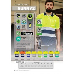 Polo alta visibilidad manga corta SUNNY2, Tejido flúor Birdeye 100% poliéster 130grs, Factor UPF 25. 96% UV EN ISO 20471:2013/A1:2016