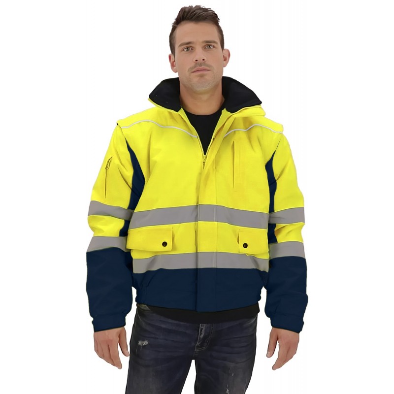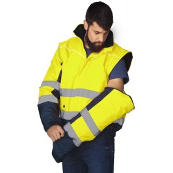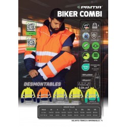 Chaleco con mangas desmontables de alta visibilidad, capucha oculta en el cuello BIKER COMBI