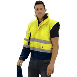 Chaleco de alta visibilidad con mangas desmontables BIKER COMBI, Tejido fluor Oxford 100% poliéster180grs. 350 D, Factor UPF 50+ 98% UV EN 13688 EN 20471 CAT-II EN 14058