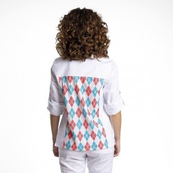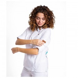 Chaqueta Reytex de cocinera mujer modelo BRASEADA CC1467 DP32, Con espalda estampada en tejido técnico transpirable, 59% algodón