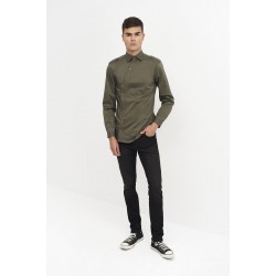 Camisa Hombre Cierre Lateral Slim Fit 02136, 75% Poliéster 21% Algodón 4% Elastano 115 gr/m2