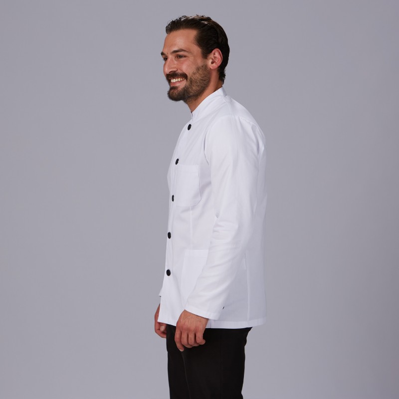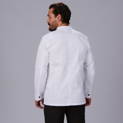 - Esta casaca de manga larga presenta un diseño elegante con cuello mao, hombreras y un bolsillo en el pecho izquierdo, lo que agrega un toque de sofisticación a tu uniforme.