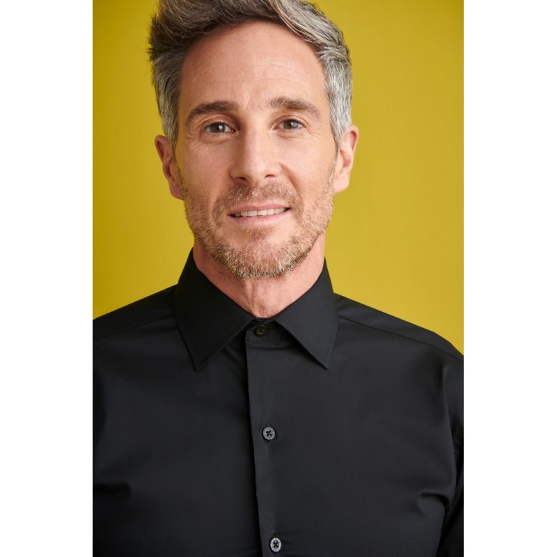 Camisa Monza Hombre Cuello Italiano Slim Fit 02141, 75% Poliéster 21% Algodón 4% Elastano 115 gr/m2