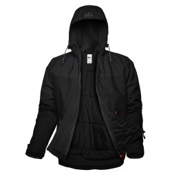- Capucha extraíble y ajustable con cordón y cierre de presión